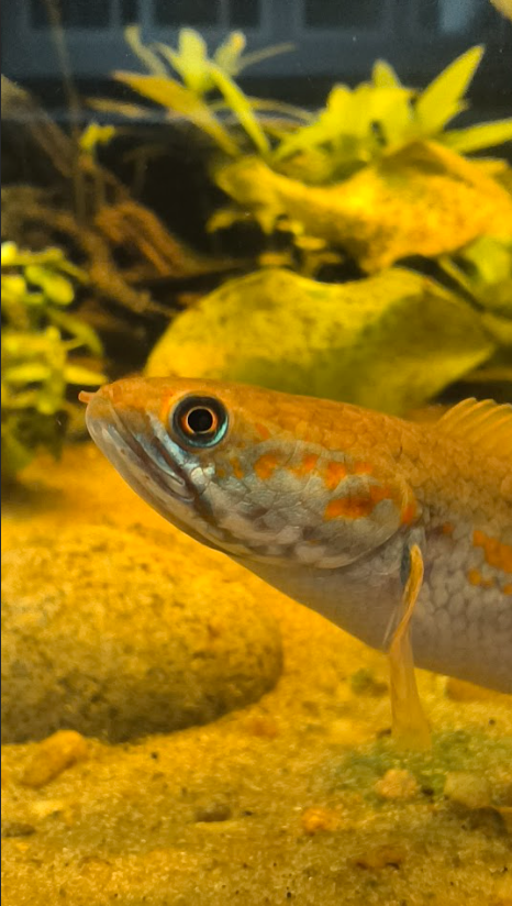 La Channa andrao es una especie de snakehead enana originaria del noreste de India (región de Assam). Es una de las Channa más pequeñas y manejables, muy apreciada por sus colores intensos y su comportamiento único. A diferencia de las especies grandes del mismo género, C. andrao es relativamente pacífica y apta para acuarios medianos, siempre que se reproduzca su ambiente natural y se respete su necesidad de refugios y estabilidad. Es un pez de hábitos crepusculares, inteligente, observador y muy cauteloso.