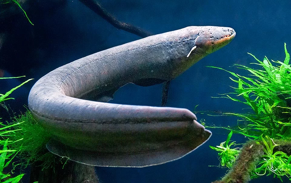 La anguila eléctrica es capaz de generar descargas eléctricas que pueden superar los 600 voltios. Estas descargas se utilizan tanto para la caza como para la defensa y la orientación, gracias a órganos eléctricos especializados que ocupan gran parte de su cuerpo.