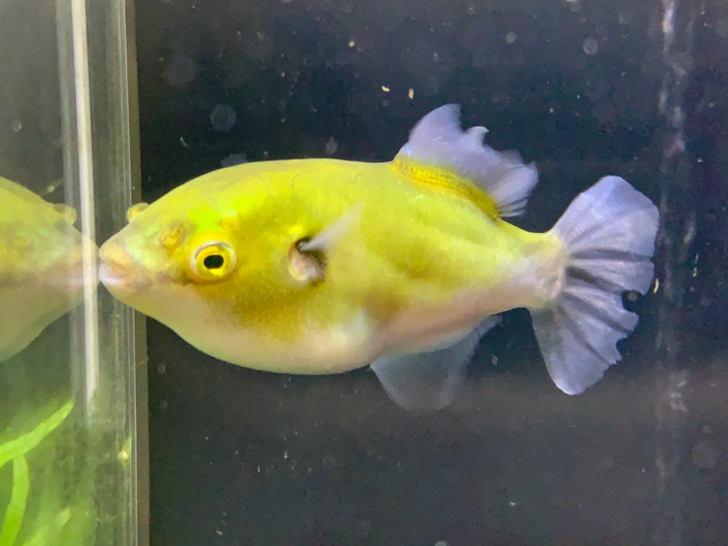 El Puffer Avocado es un nombre comercial utilizado para una variedad de puffer enanos de tonos verdes, amarillentos o oliva, cuyo aspecto recuerda la textura y color de un “avocado”. Son peces curiosos, inteligentes y con fuerte personalidad. A diferencia de puffers grandes, estos suelen mantenerse en acuarios pequeños–medianos, pero requieren condiciones estables, alimentación carnívora y cuidado de dientes (que crecen de manera continua).