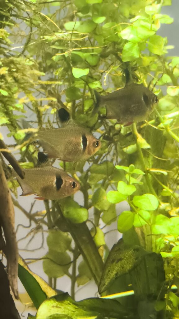 Se destaca por su mancha negra en forma de “fantasma”, su comportamiento tranquilo y sus movimientos elegantes. Es ideal para acuarios plantados y convive bien con la mayoría de peces pequeños.